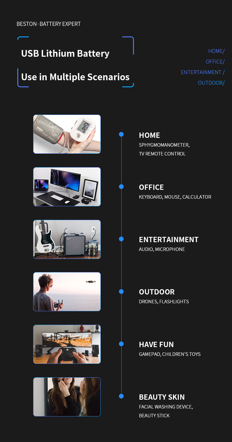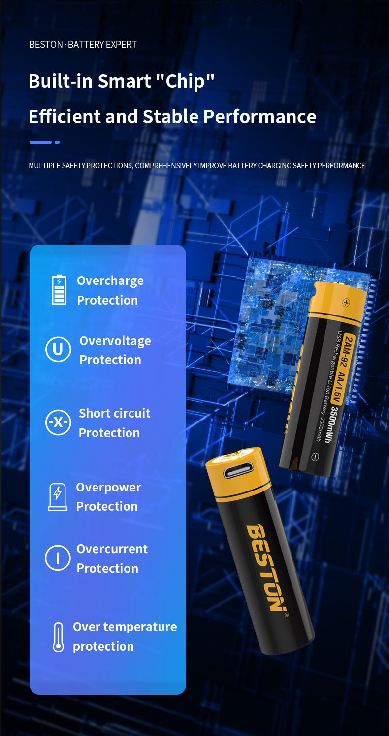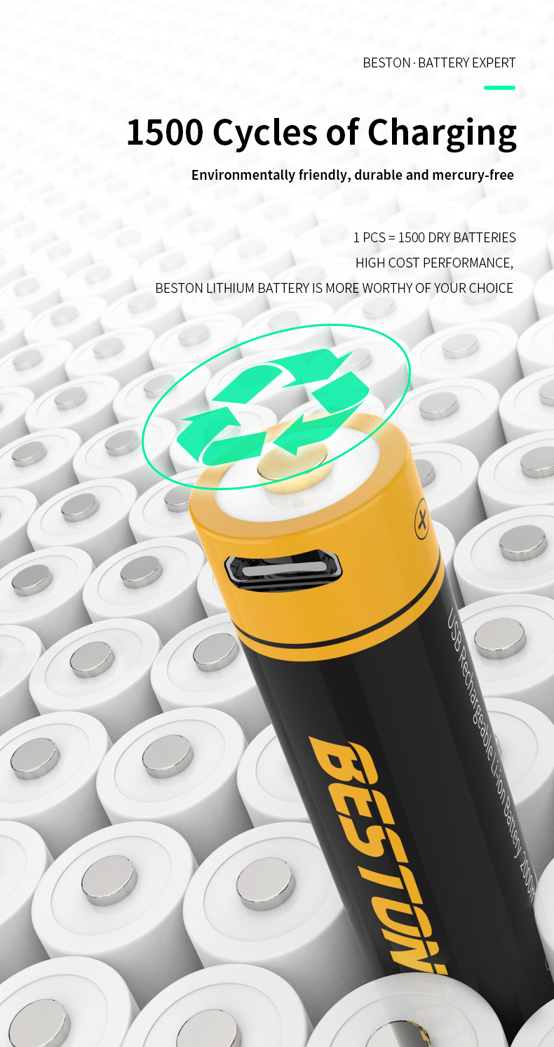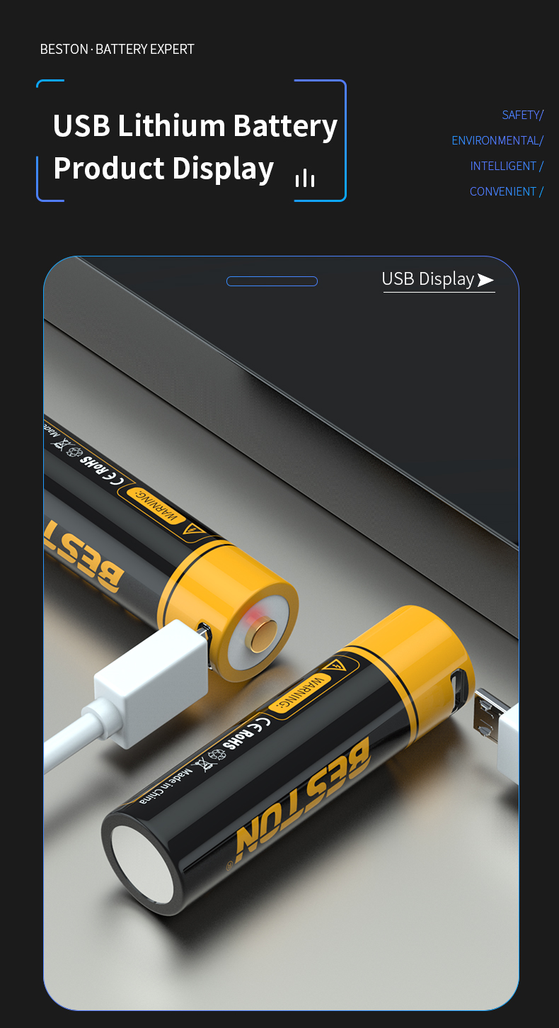 BESTON 3500mWh AA micro USB lithium battery 2 cells package