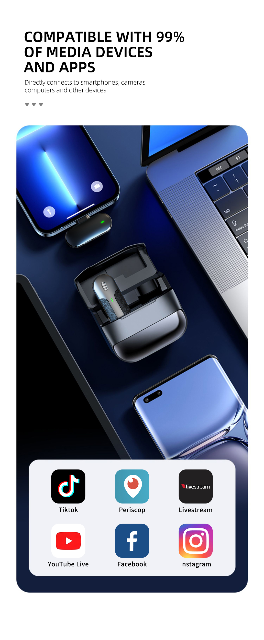 Vimai M8L wireless Microphone for iOS devices (That has lightning port) with charging case