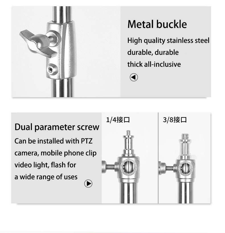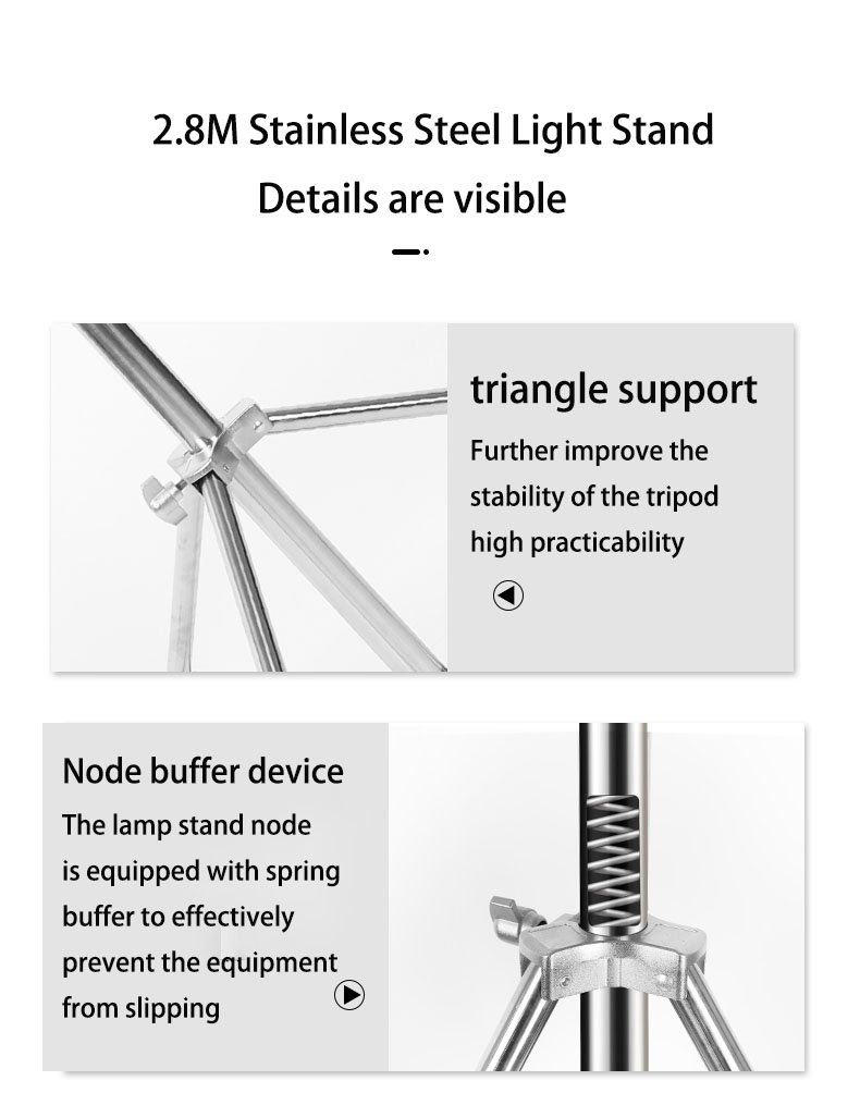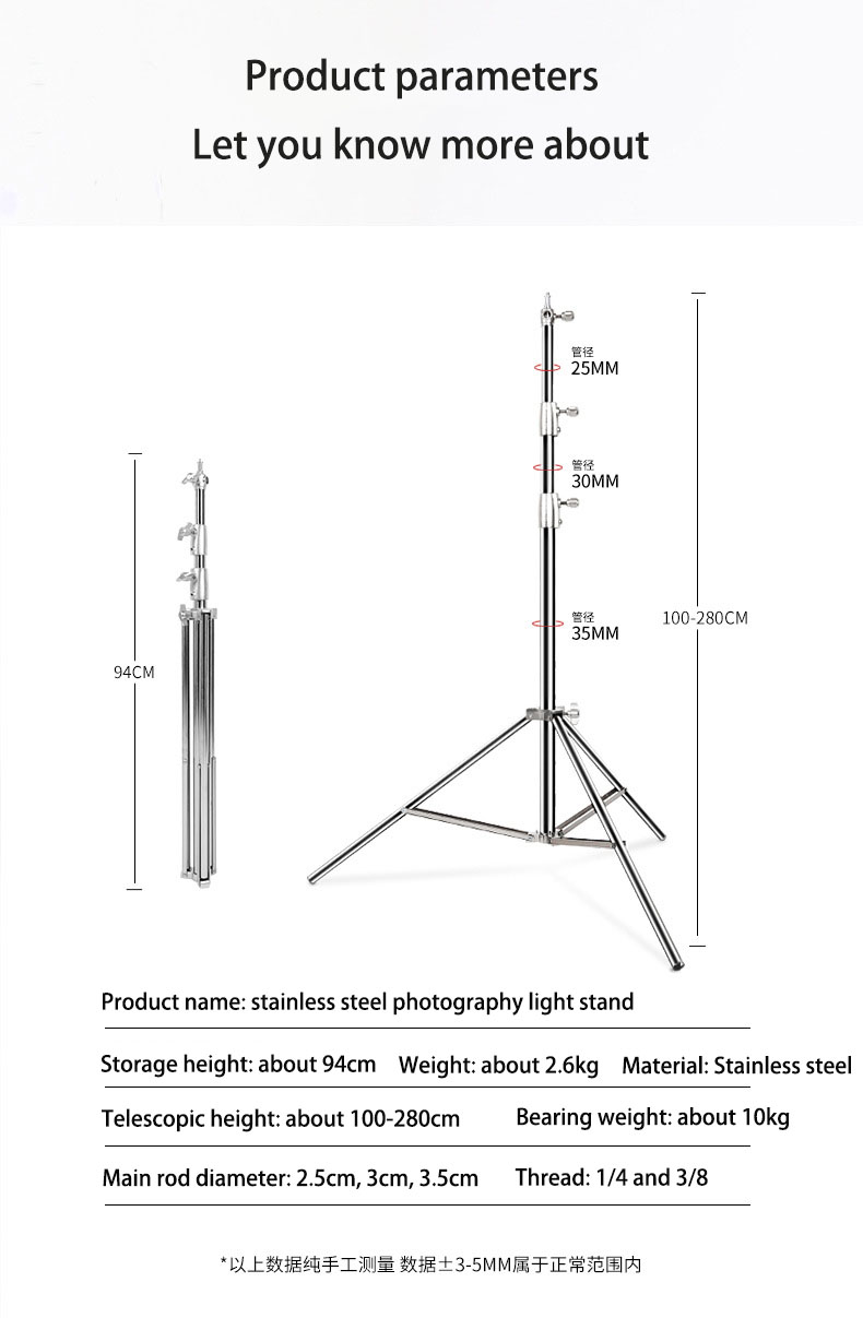 1. Stainless steel structure is anti-corrosion and anti-rust. Strong enough to hold video light, flash, softbox…